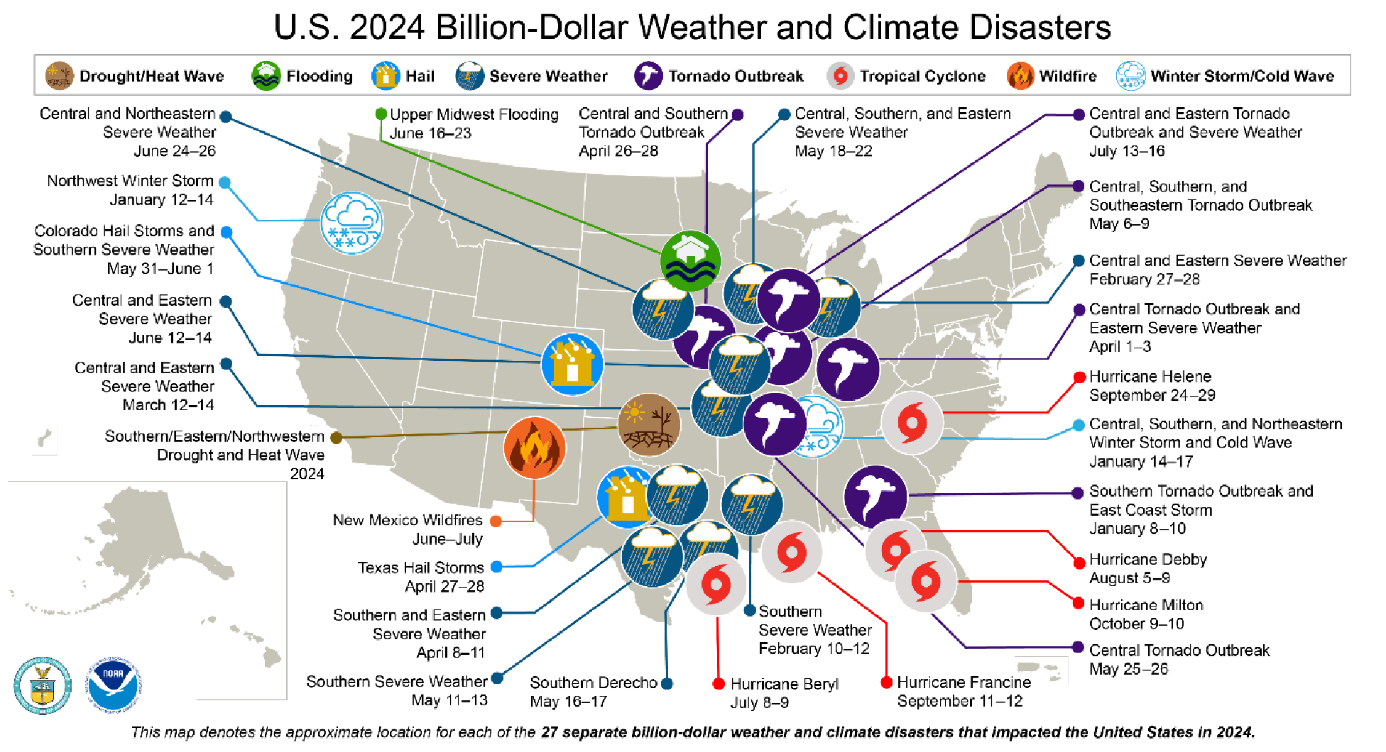 - In 2024, the US experienced 27 weather events with losses greater than $1B. 1