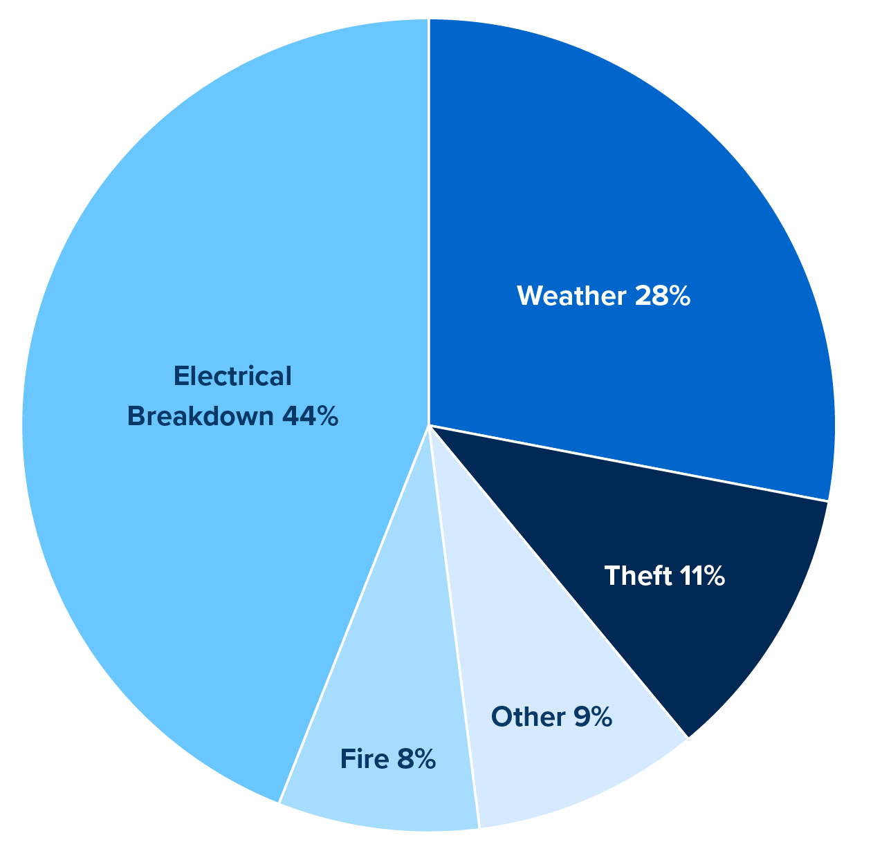 Above shows onshore wind loss by occurrence. The most severe losses are typically wind turbine generator (WTG) collapses or up-tower fire/electrical breakdowns.